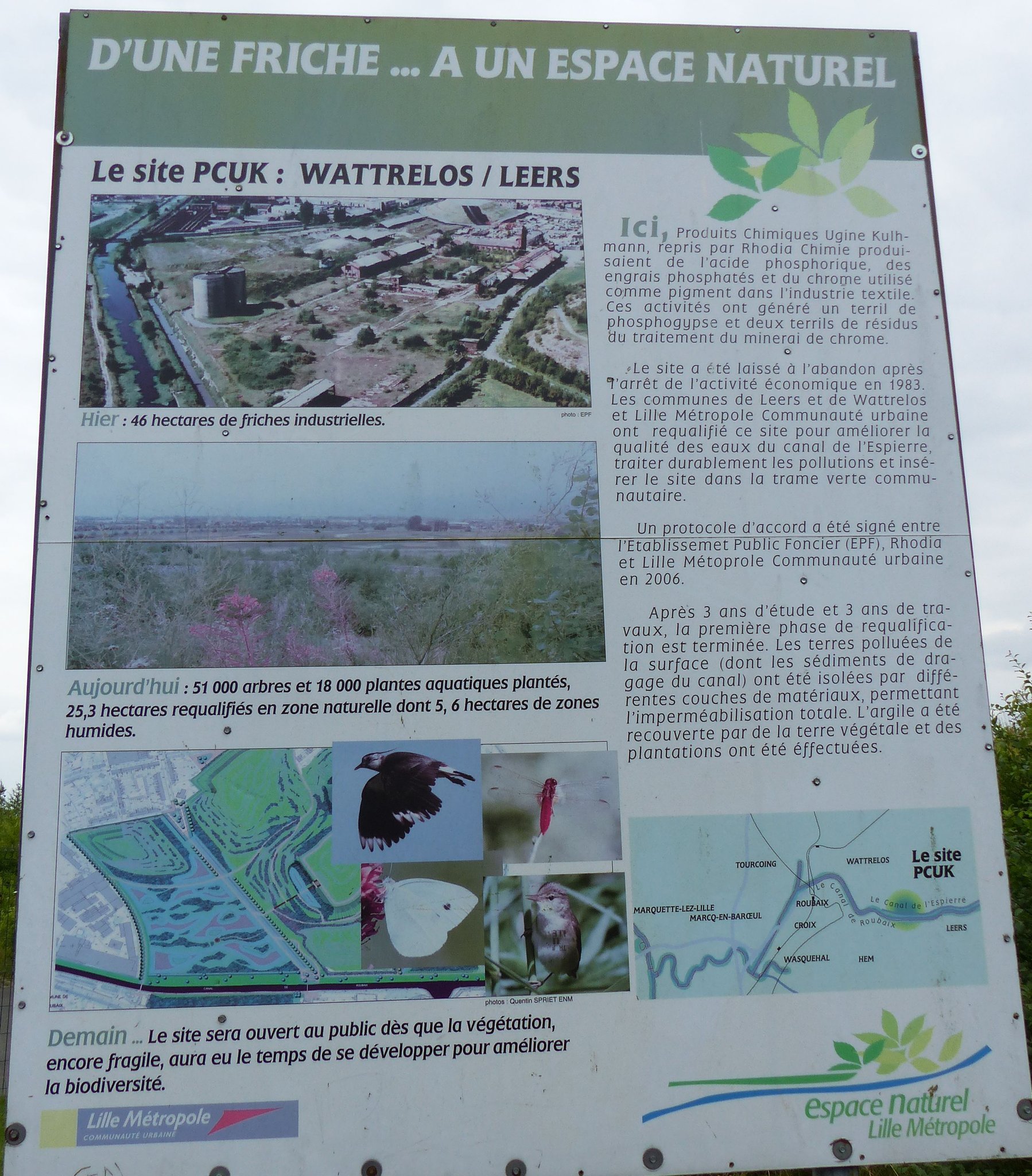 Wattrelos, commune aux 2 Fleurs, abritait autrefois l'usine PCUK : Société de produits chimiques Pechiney Ugine Kuhlmann. Ce site d'exploitation de 46 hectares, était actif jusque dans les années 80's. Lorsque l'activité a pris fin, Wattrelos a récupéré un terrain laissé à l'abandon, composé de trois terrils dont le plus grand, géant de 7 hectares. C'est une zone abîmée par l'industrie mais surtout au sol pollué, notamment par le Chrome qui va alors être redynamisée.