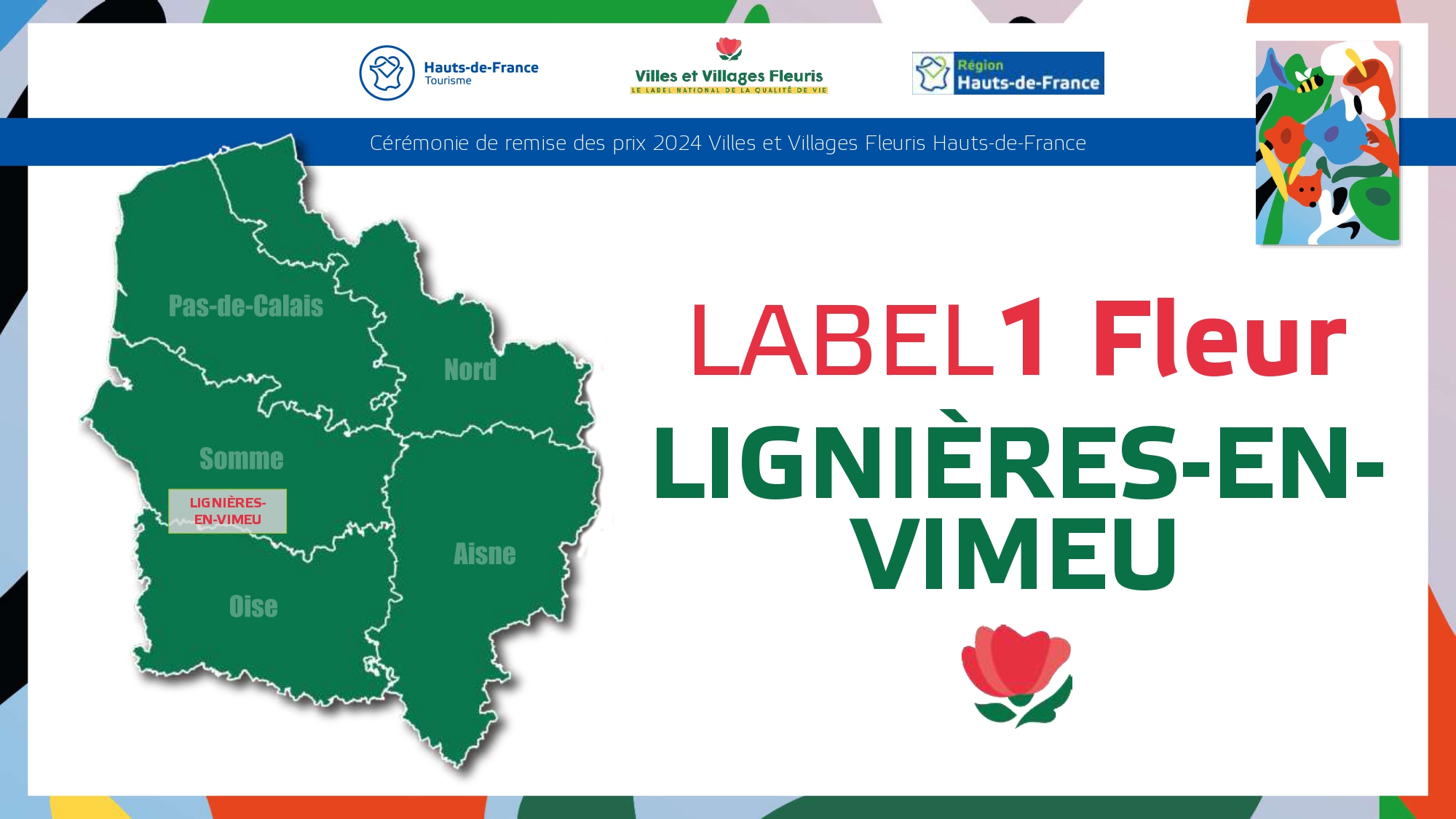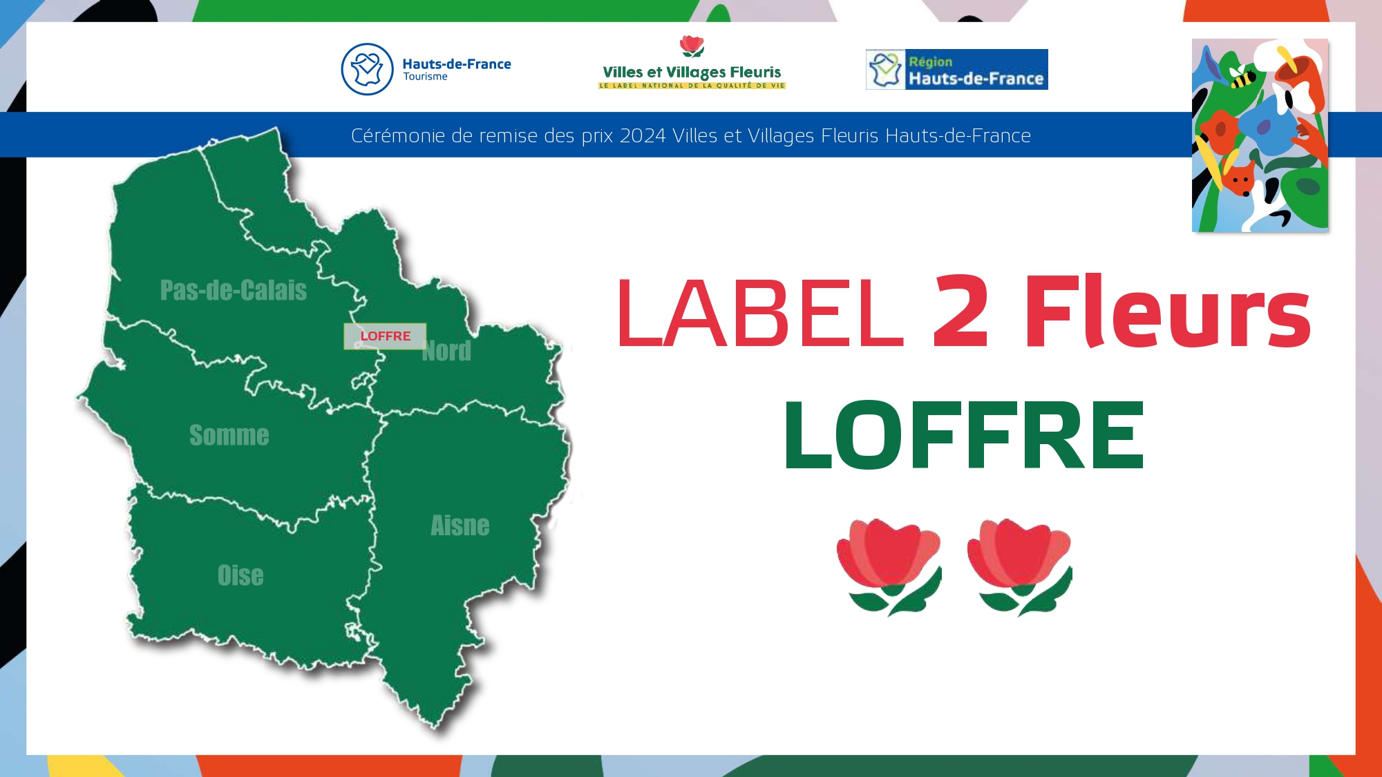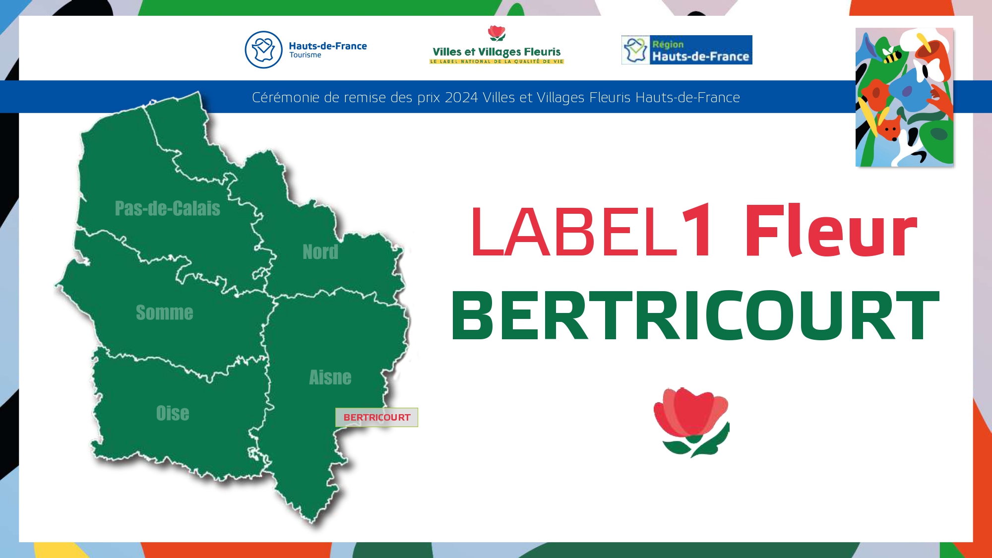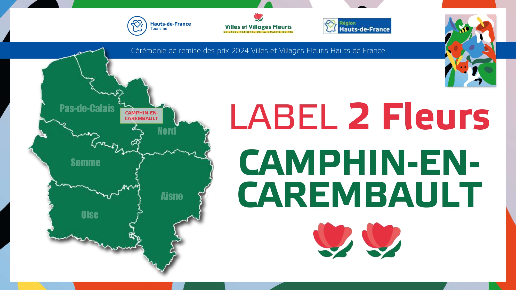 Félicitations à toutes ces communes qui contribuent à la qualité du cadre de vie et de l'environnement au profit des habitants et qui font de la région Hauts-de-France une terre accueillante et fleurie pour les visiteurs et les touristes.
