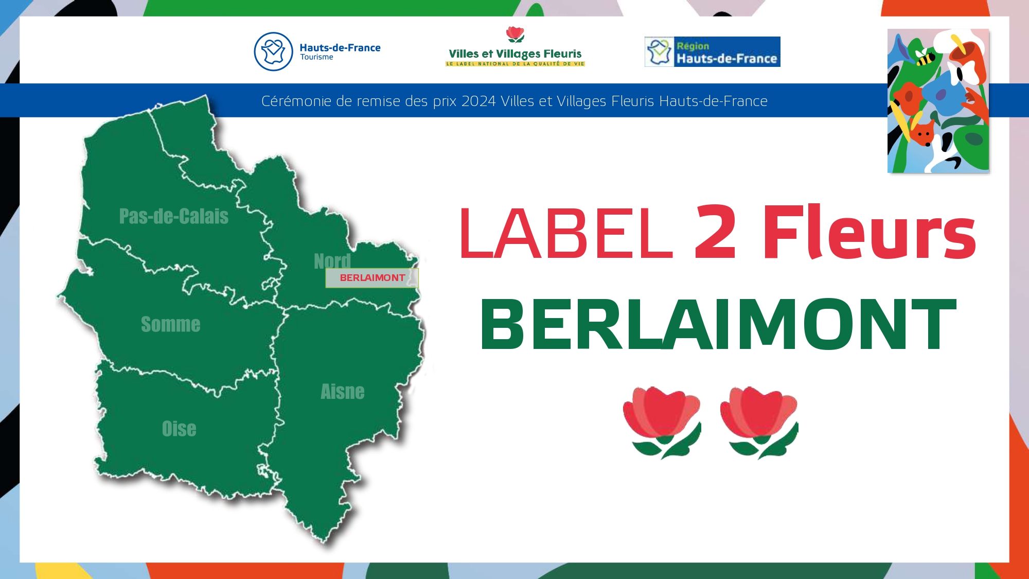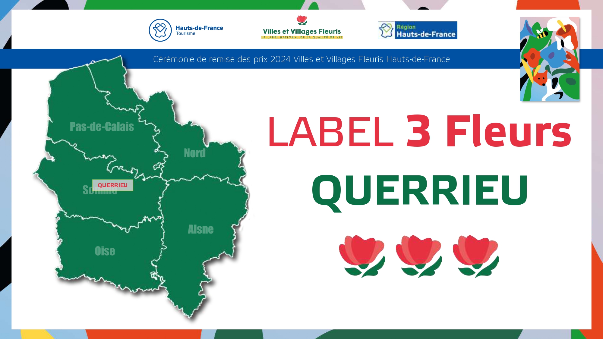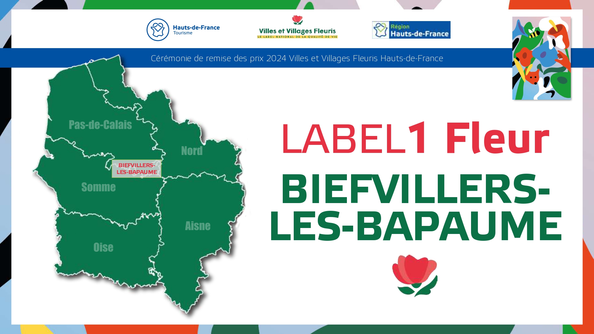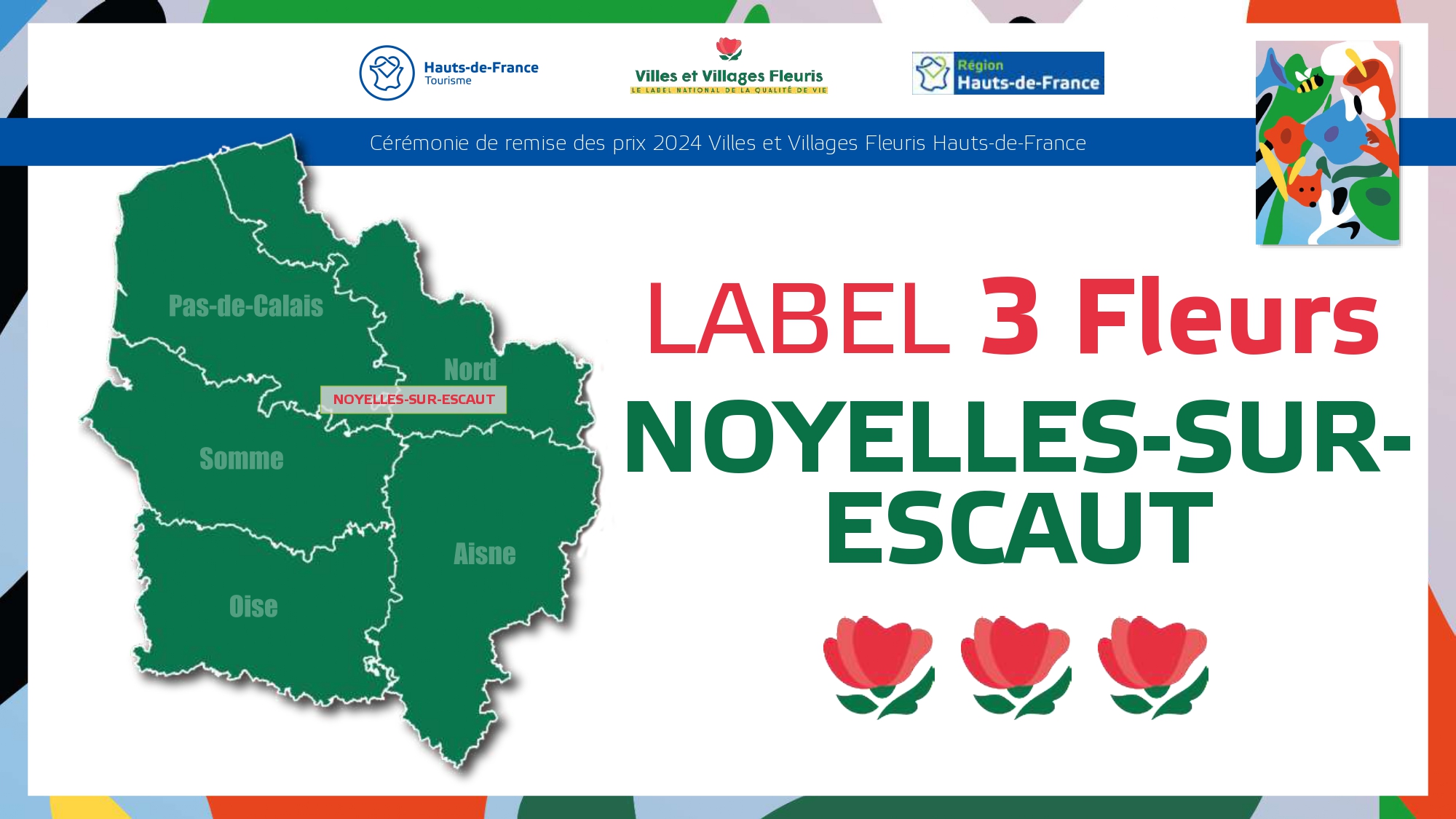 Félicitations à toutes ces communes qui contribuent à la qualité du cadre de vie et de l'environnement au profit des habitants et qui font de la région Hauts-de-France une terre accueillante et fleurie pour les visiteurs et les touristes.