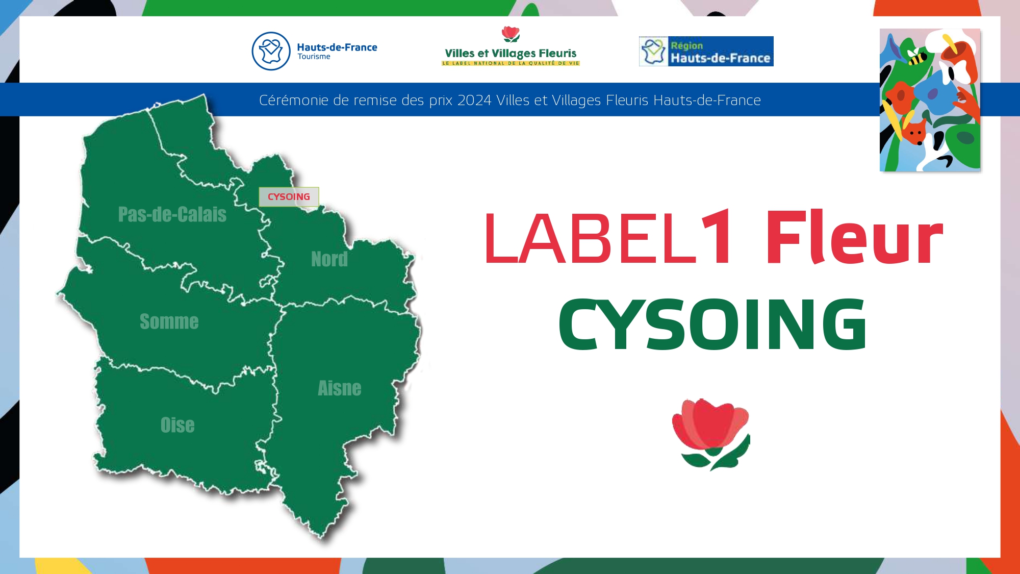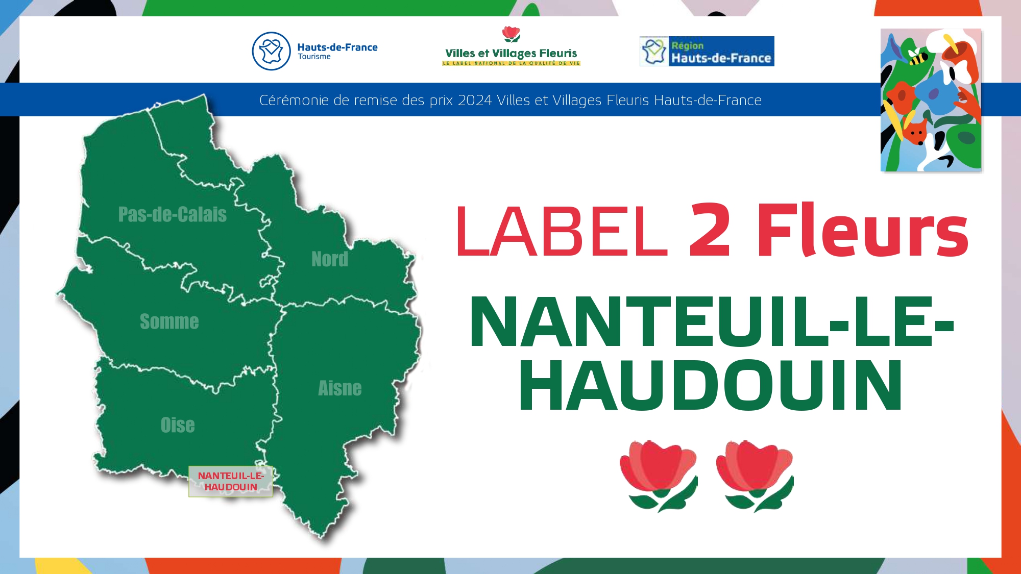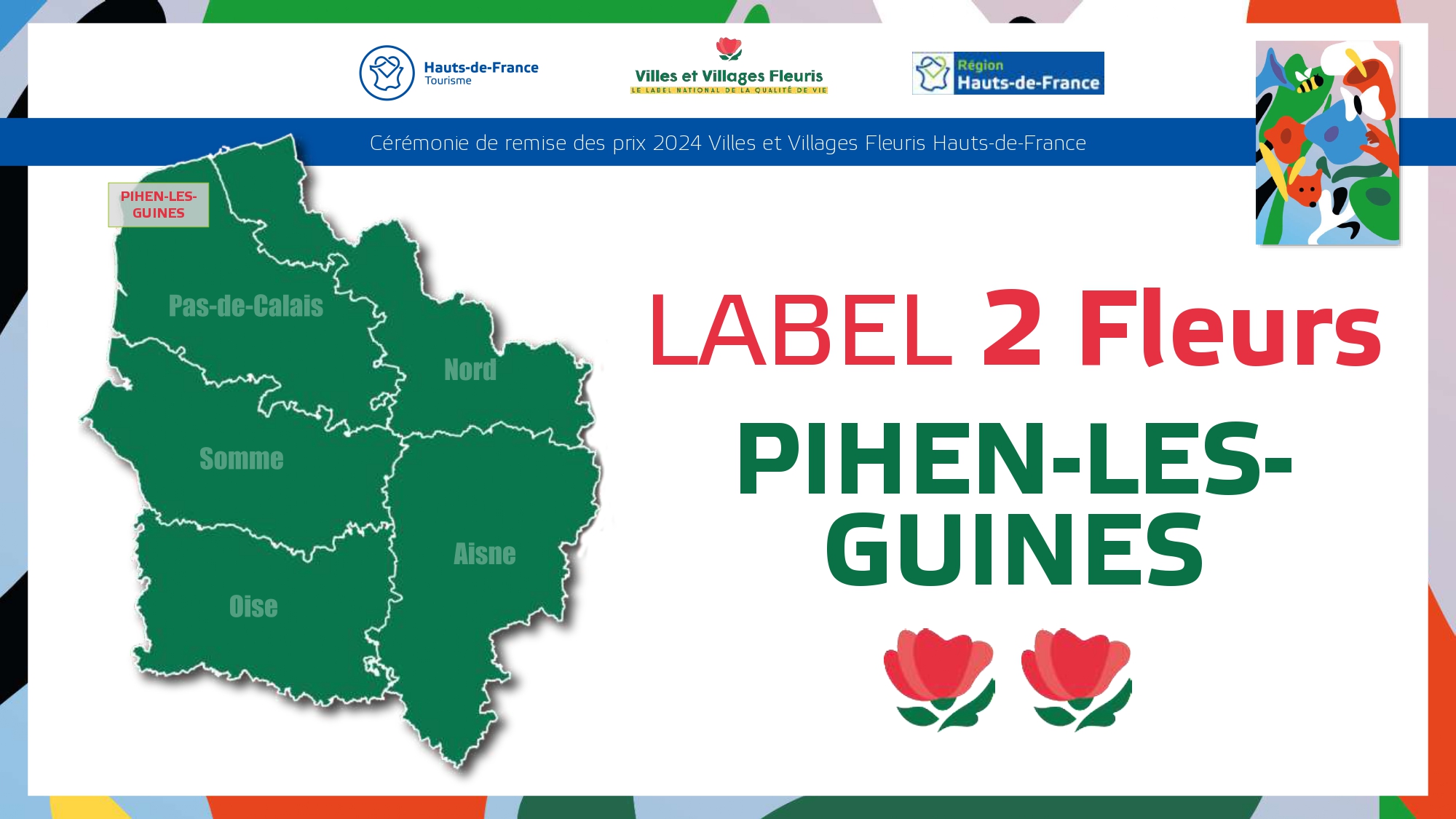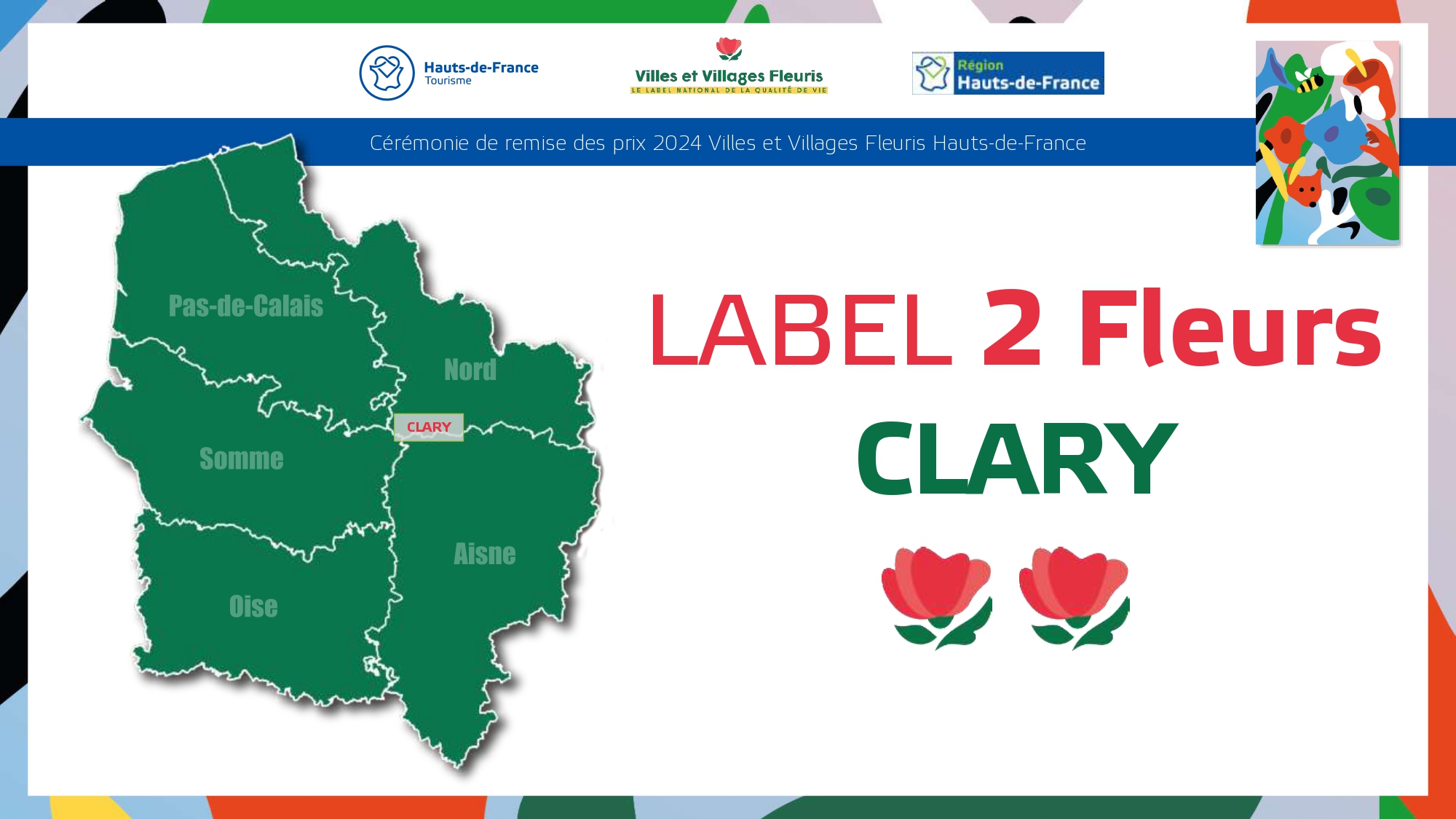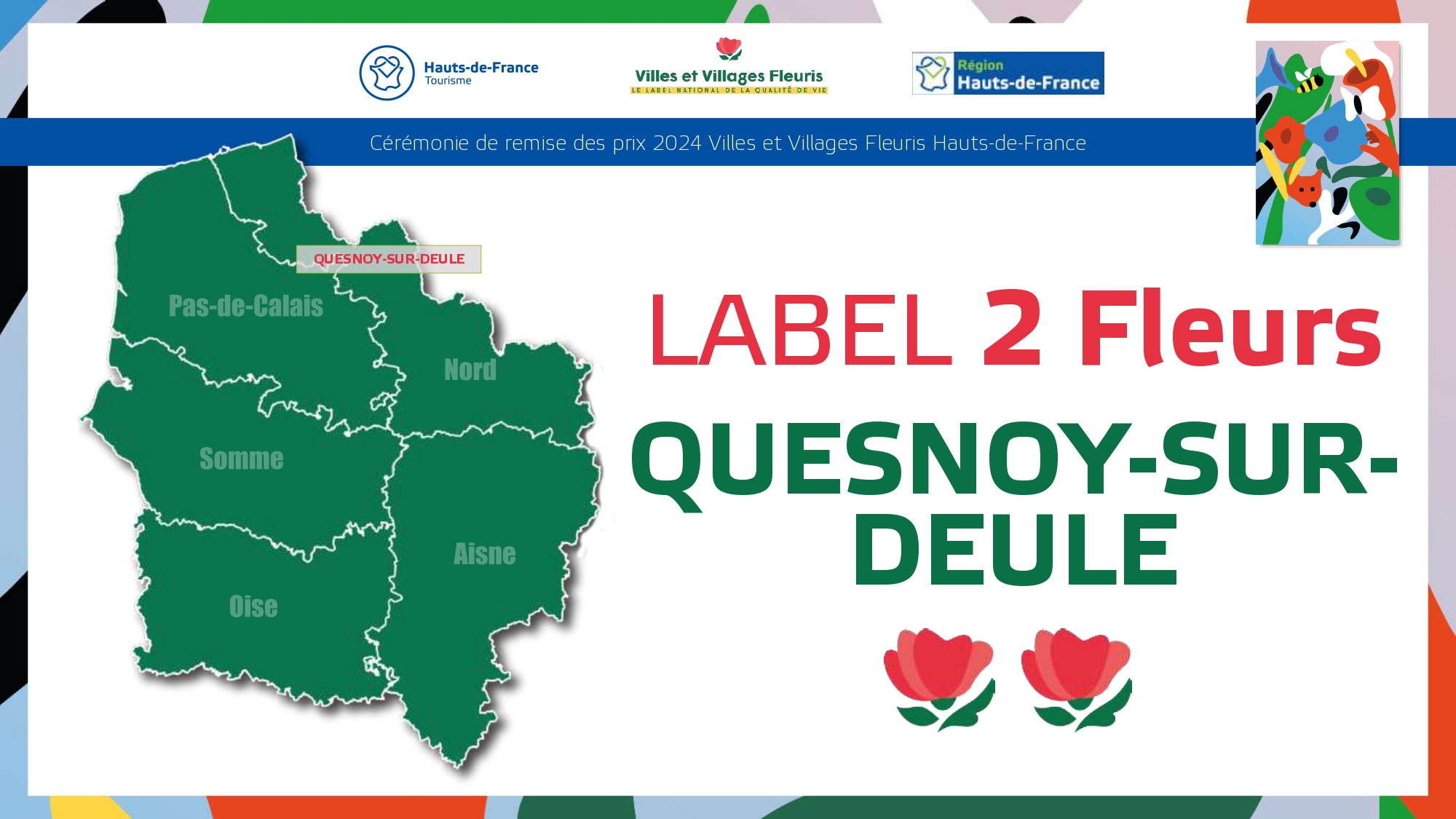 Félicitations à toutes ces communes qui contribuent à la qualité du cadre de vie et de l'environnement au profit des habitants et qui font de la région Hauts-de-France une terre accueillante et fleurie pour les visiteurs et les touristes.
