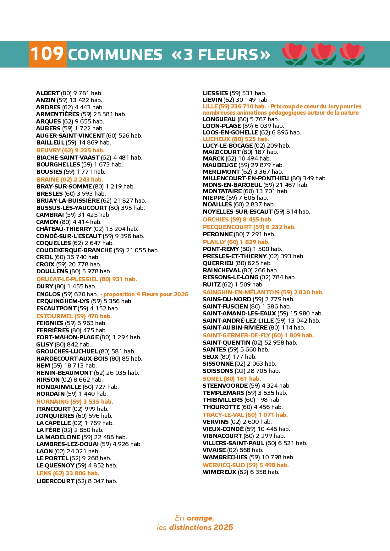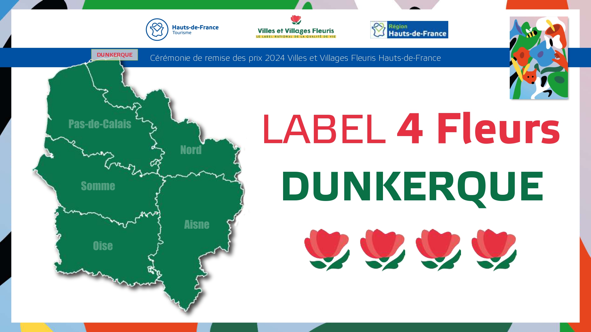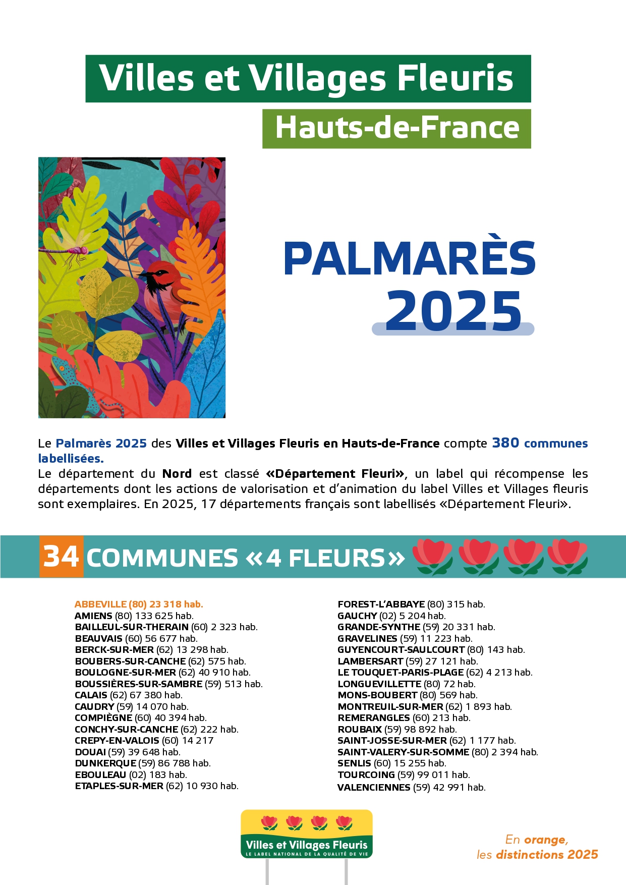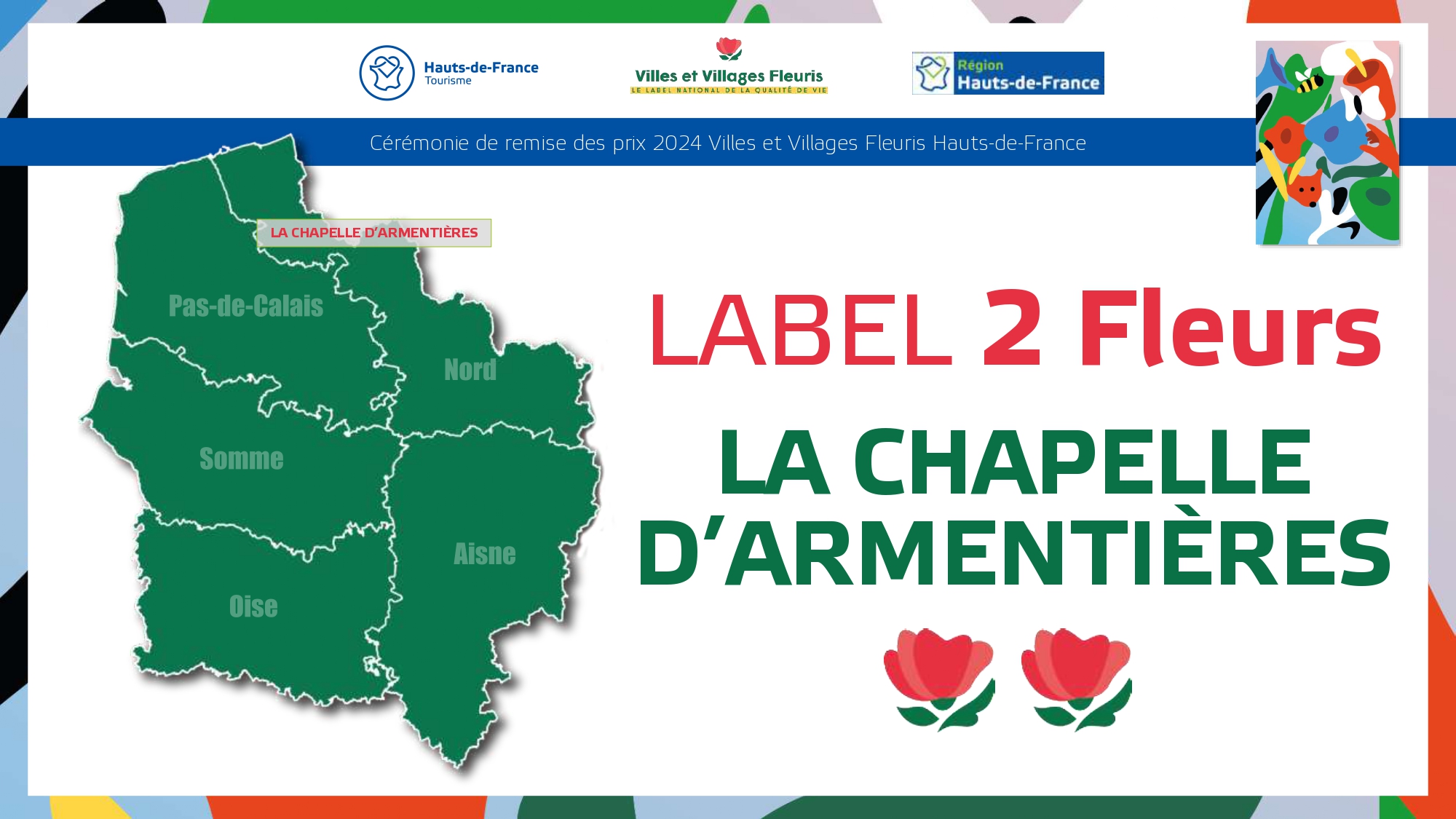 Félicitations à toutes ces communes qui contribuent à la qualité du cadre de vie et de l'environnement au profit des habitants et qui font de la région Hauts-de-France une terre accueillante et fleurie pour les visiteurs et les touristes.