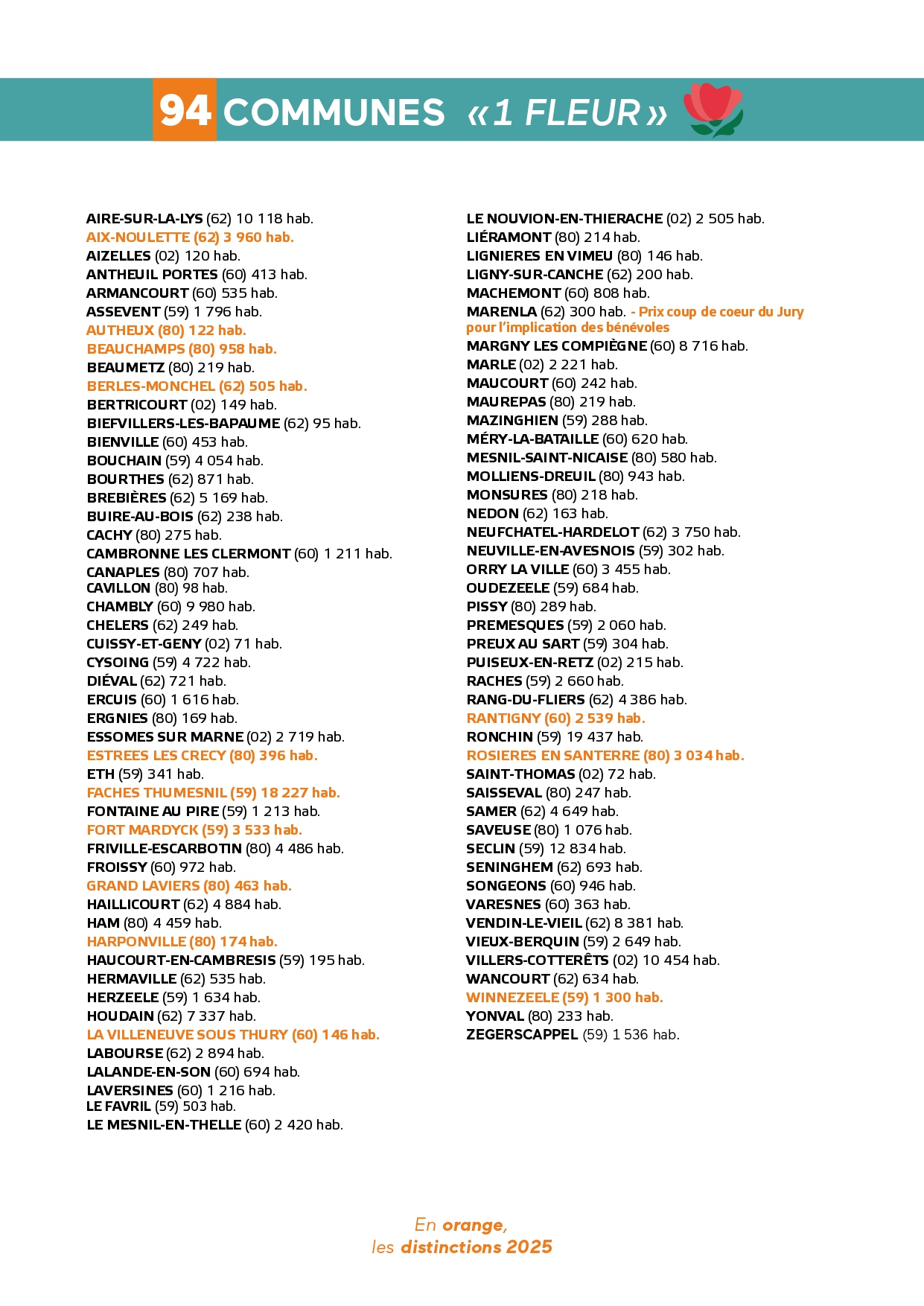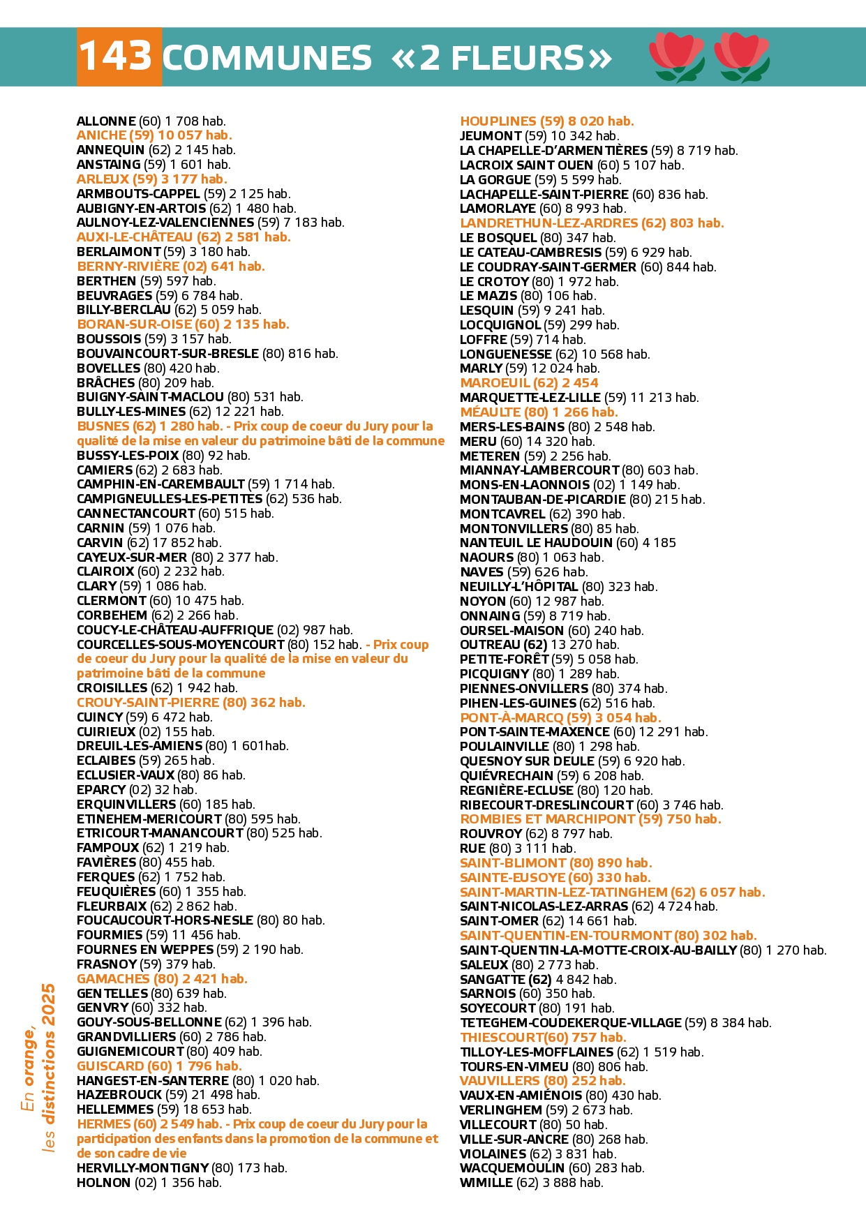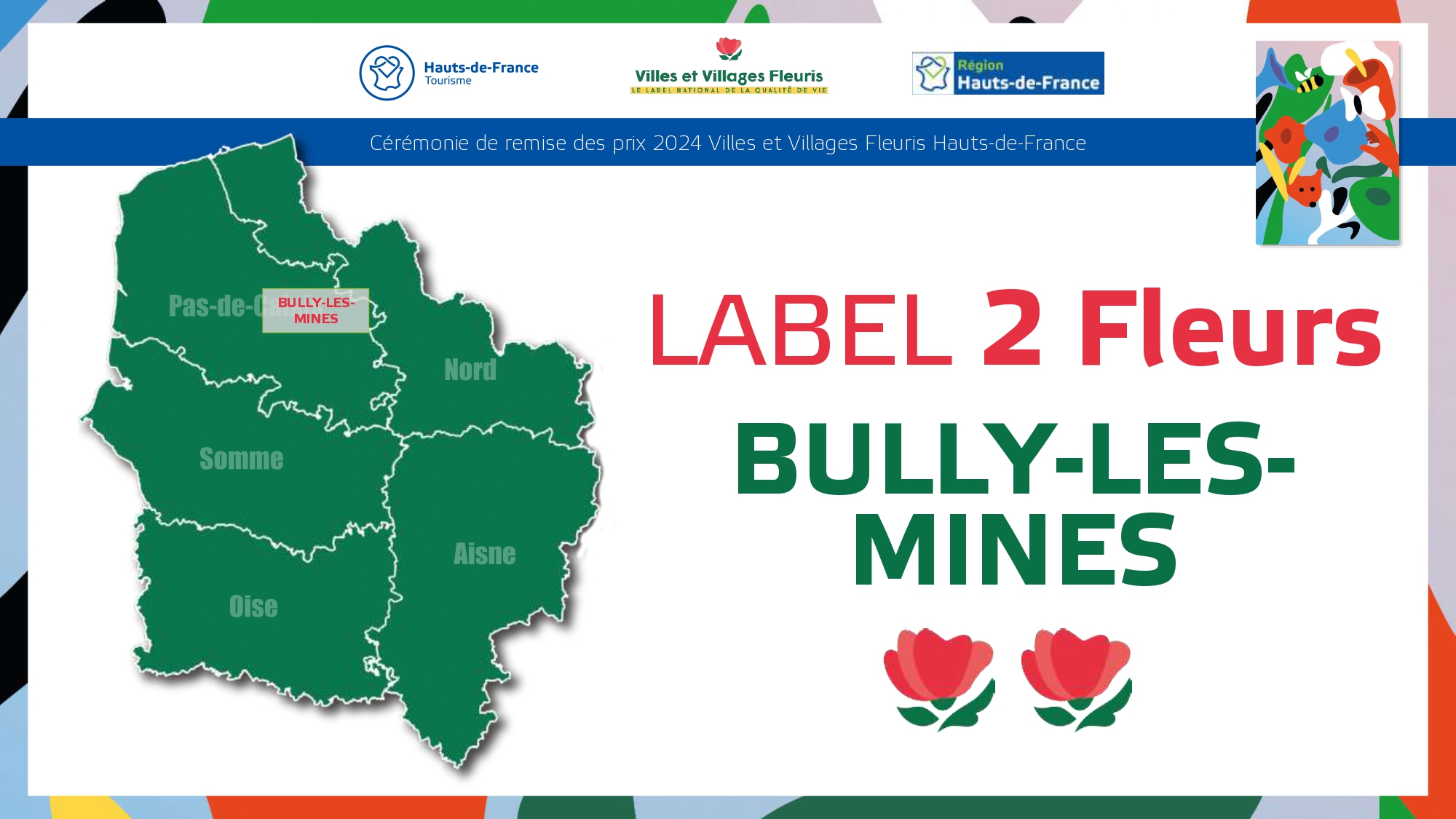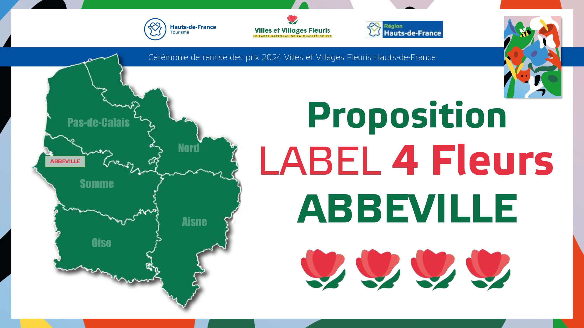 Félicitations à toutes ces communes qui contribuent à la qualité du cadre de vie et de l'environnement au profit des habitants et qui font de la région Hauts-de-France une terre accueillante et fleurie pour les visiteurs et les touristes.